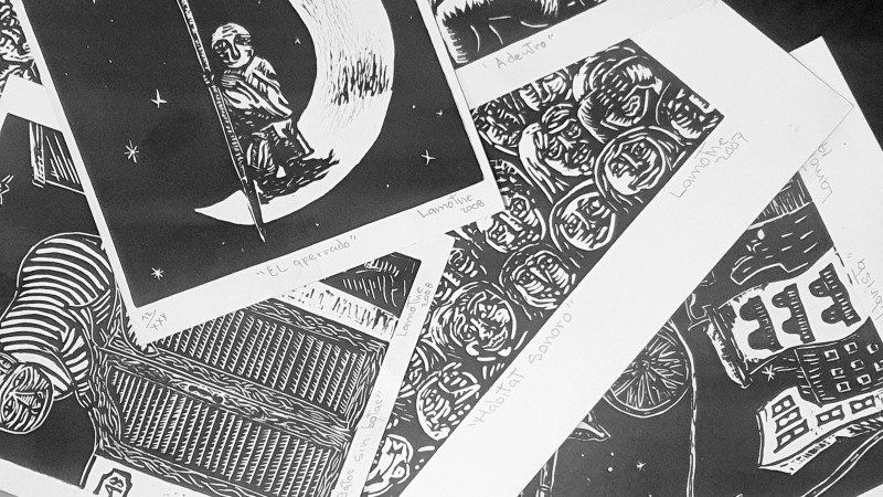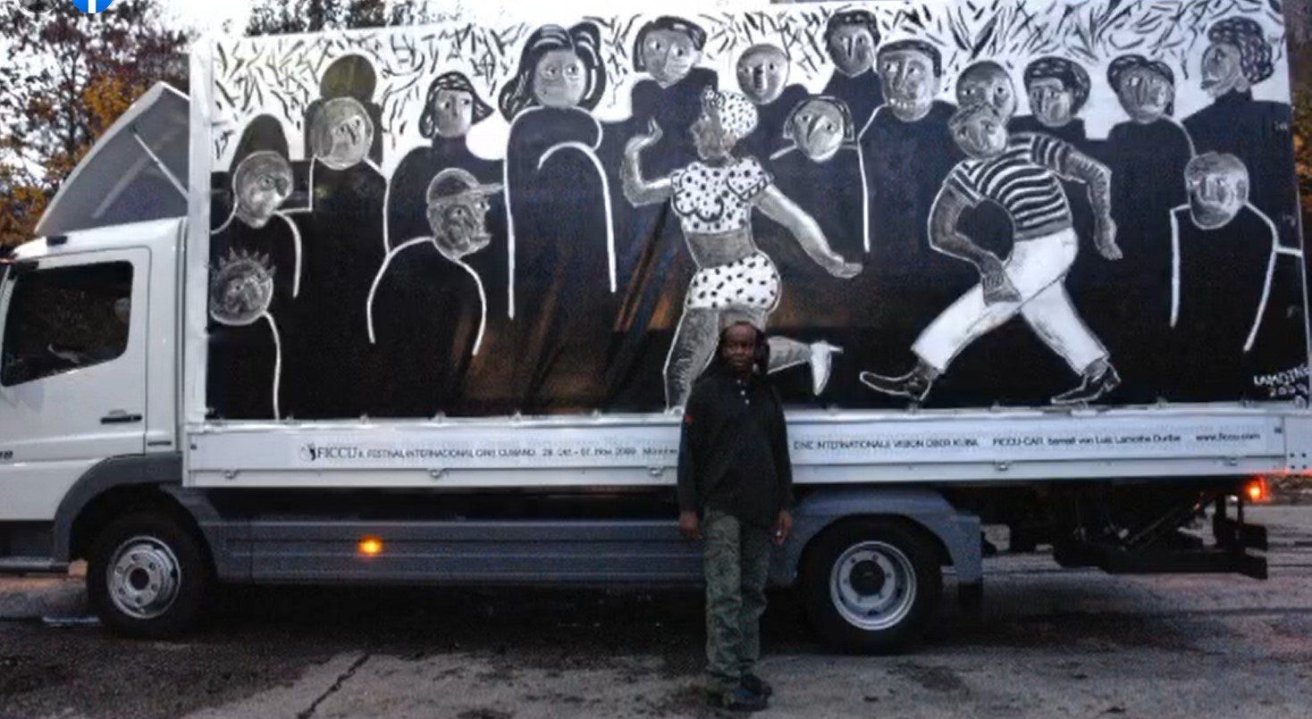 Ich war zutiefst beeindruckt, als ich Lamothe 2009 in München bei der Arbeit an diesem Riesengemälde sah: die so eigenwilligen und sehr charakteristischen Figuren, komplett in Schwarzweiß gehalten, auf die Plane eines großen LKW gemalt. Ein Treffen in der lateinamerikanischen Szene Münchens 2009 nahm ich als Fahrer des FICCU-LKW an der Durchführung des von Elvira Rodriguez-Puerto initiierten und organisierten Kubanischen Filmfestivals in München teil. Ich war damals viel mit Menschen aus Lateinamerika unterwegs. Mit Elvi (Elvira Rodriguez-Puerto) verband mich eine künstlerische Zusammenarbeit über mein damaliges Musik-Projekt „car.dio“. Und das von ihr im Zweijahresrhythmus organisierte „Festival del cine Cubano“ („Ficcu“) suchte einen LKW-Fahrer. Ich habe einen LKW-Führerschein und ich fand es spannend, auf diesem Wege Insider des FICCU zu werden. Und so lernte ich Lamothe kennen. Er wurde eingeladen, seine Werke (Linolschnitte) im Rahmen des Festivals auszustellen. Darüber hinaus sollte er die Plane eines 7,5t-LKW gestalten – das war ein riesiges Werbebanner, das ich sodann in München und Umgebung umherfuhr, um das FICCU zu promoten. Ich hatte bis dahin weder jemals von Lamothe gehört, noch war mir klar, was ein Linolschnitt ist und schon gar nicht hatte ich jemals eines seiner Werke gesehen. Doch Kuba interessierte mich, denn Kuba war damals noch ein sozialistisches Land, ist es heute noch. Ich selbst stamme aus Rumänien. Meine ersten 16 Lebensjahre verbrachte ich im kommunistischen Rumänien während der Diktatur Nicolae Ceausescus. Mich interessier/t/en diese Menschen, die Kunst in einem Land schaffen, welches – gelinde gesagt - mit seinen Bürgern nicht gut umgeht. Lamothe kam also nach München und brachte seine Werke mit, die er hier ausstellen sollte. Das sicherlich interessanteste Werk seines Schaffens ist das fünfzigteilige „Große Sofa“ - „El gran sofa“. Das ist die Bezeichnung für den „Malecón“, die Uferpromenade in Havanna, auf der sich das Leben Havannas abspielt. Die Menschen sitzen nicht daheim auf dem Sofa, vor dem Fernseher mit Bier und Chips, nein, sie gehen aus, ihr Sofa ist der Malecón, diese Promenade. 50 Bilder, jedes 70x90 cm, insgesamt also 45 m lang. Ein Werk „… das ich der Aufopferung des Kubanischen Volkes in den letzten fünfzig Jahren widme…“ sind seine Worte dazu. Siempre para el arte! Wir verstanden uns auf Anhieb. Er, der Maler und ich, der Musiker. Unsere gemeinsame Devise war in den folgenden Jahren: „Siempre para el arte!“ (immer für die Kunst!). Bei diesem Aufenthalt übergab er mir einen großen Stapel seiner Bilder, die er aus Kuba mitgebracht hatte mit dem Wunsch, diese gemeinsam auszustellen und zu verkaufen. Diesem Wunsch komme ich seit dem nach. Wir blieben in Verbindung, über Facebook, ab und an hatte er noch Europa besucht, Ausstellungen in Frankreich und der Schweiz gemacht. Als ich ihm im Sommer 2020 zu seinem 58sten Geburtstag gratulieren wollte, kam es nicht mehr dazu – völlig unerwartet starb er an einem Herzinfarkt in Mexiko.